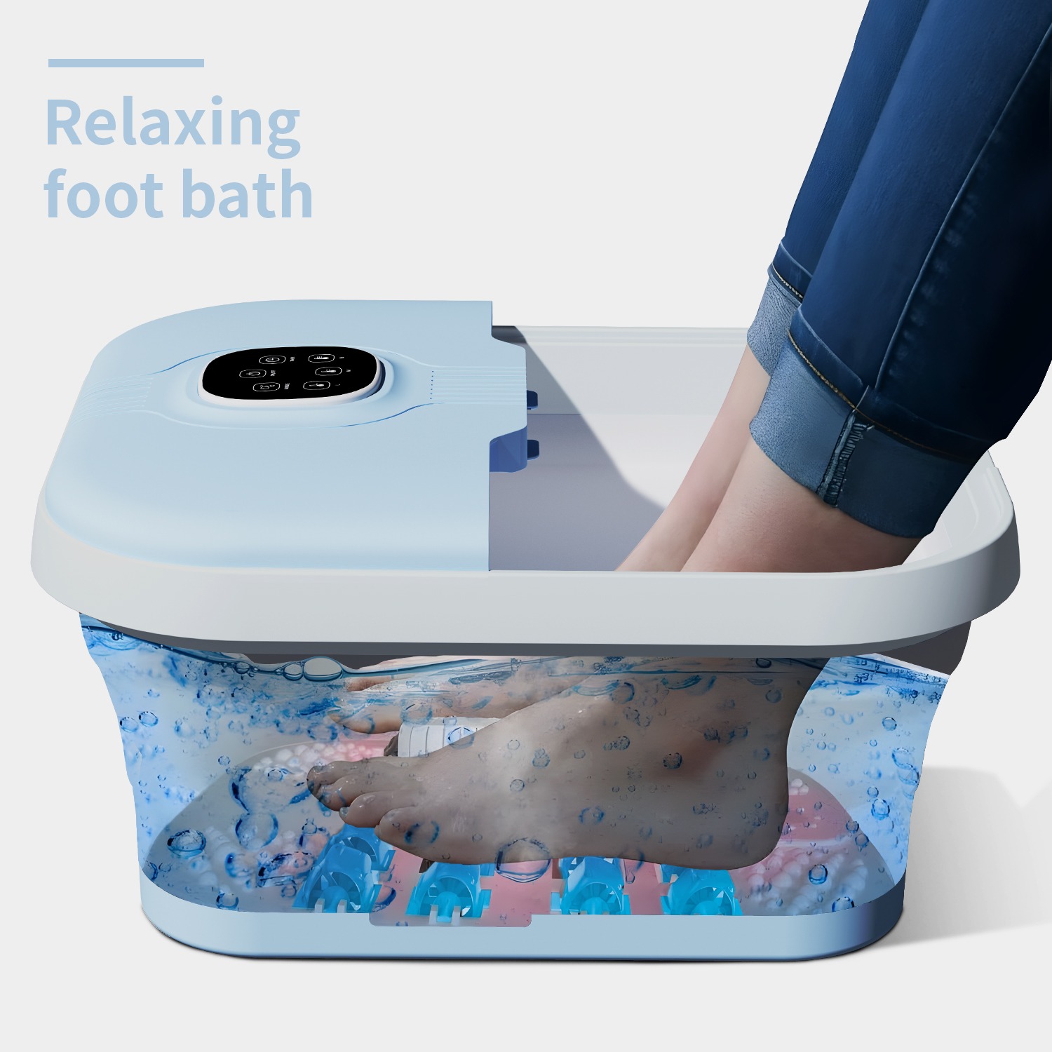 Electric Collapsible Foot Spa with Heat, Foot Massager with 16 Massage Rollers & Bubble, Foot Bath Massager for Home Use,Remote Control