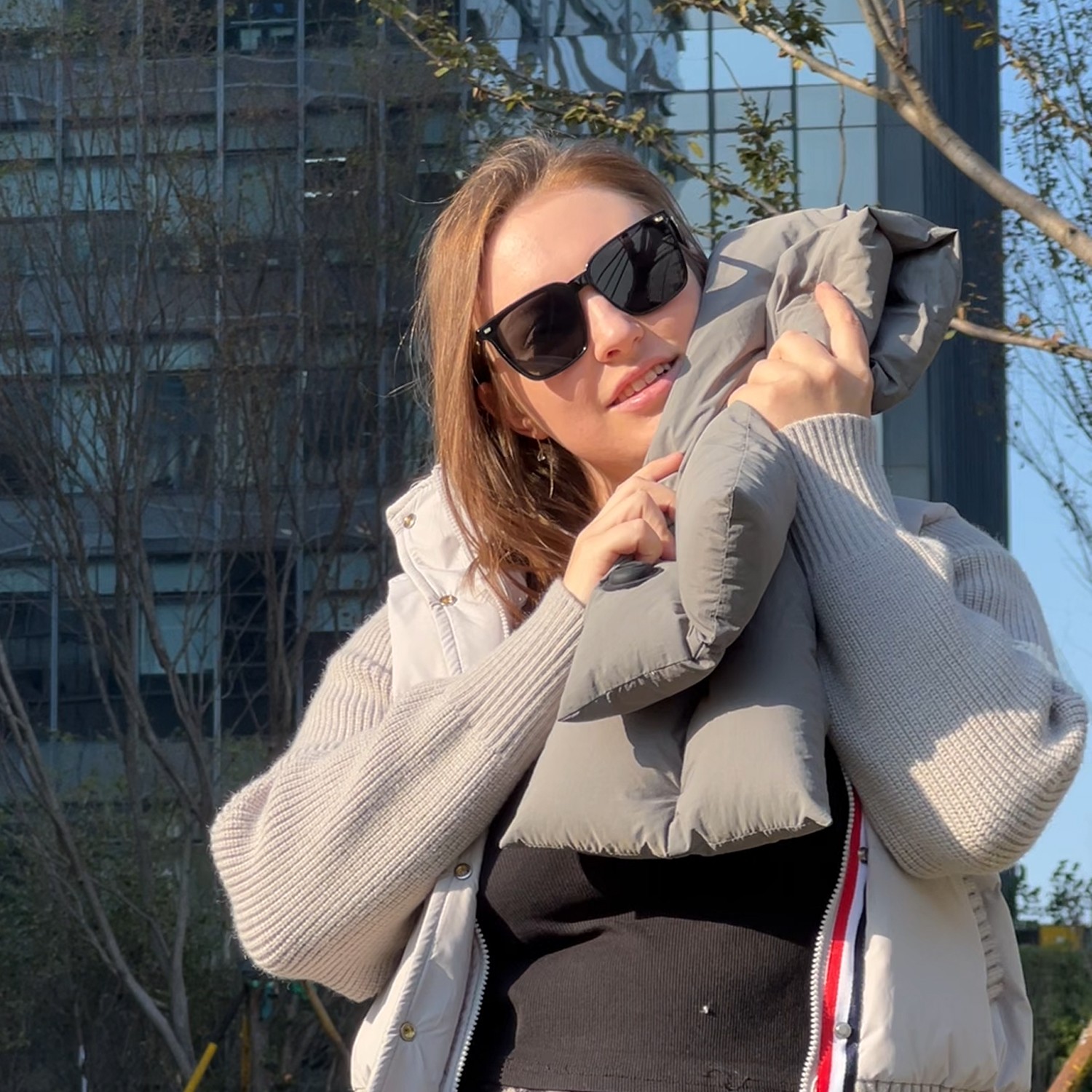 This heated neck scarf is supported by a 5000mAh power bank. It features an electric heating pad for neck pain relief and stiffness. The scarf offers all-day adjustable warmth with 3 temperature adjustment gears. Press the power button to cycle through high (65℃), medium (55℃), and low (45℃) gears. It automatically shuts down after 90 minutes