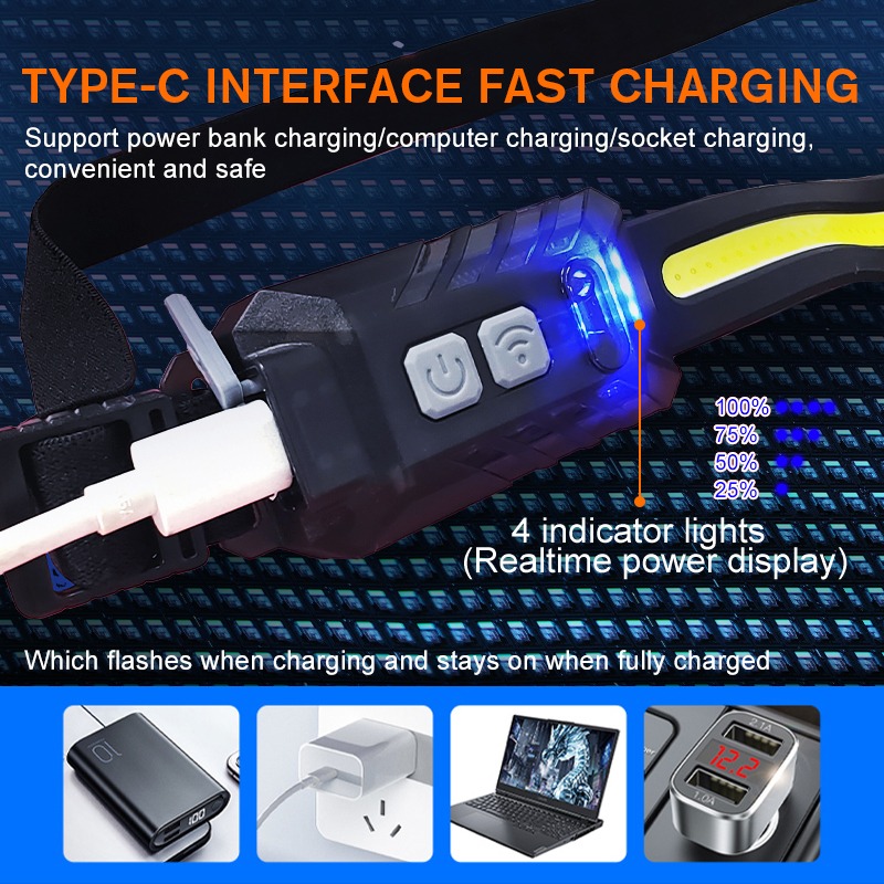Portable Rechargeable Head Lamp COB Outdoor Running Climbing Working Multi-Source Headlights LED Headlamp